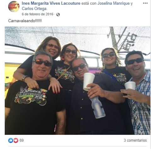 A pesar de su situación judicial Inés Margarita Vives no perdió su entusiasmo frene a las fiestas caribes, incluido el Carnaval de Barranquilla del 2016.