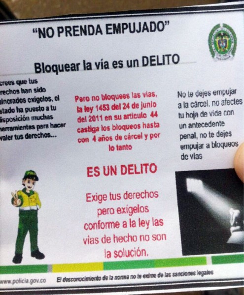 La campaña se llama “No prenda empujado” y en letras rojas les recuerda a los que estén pensando en taponar las vías, que el hecho puede ocasionar penas según lo establece la Ley.