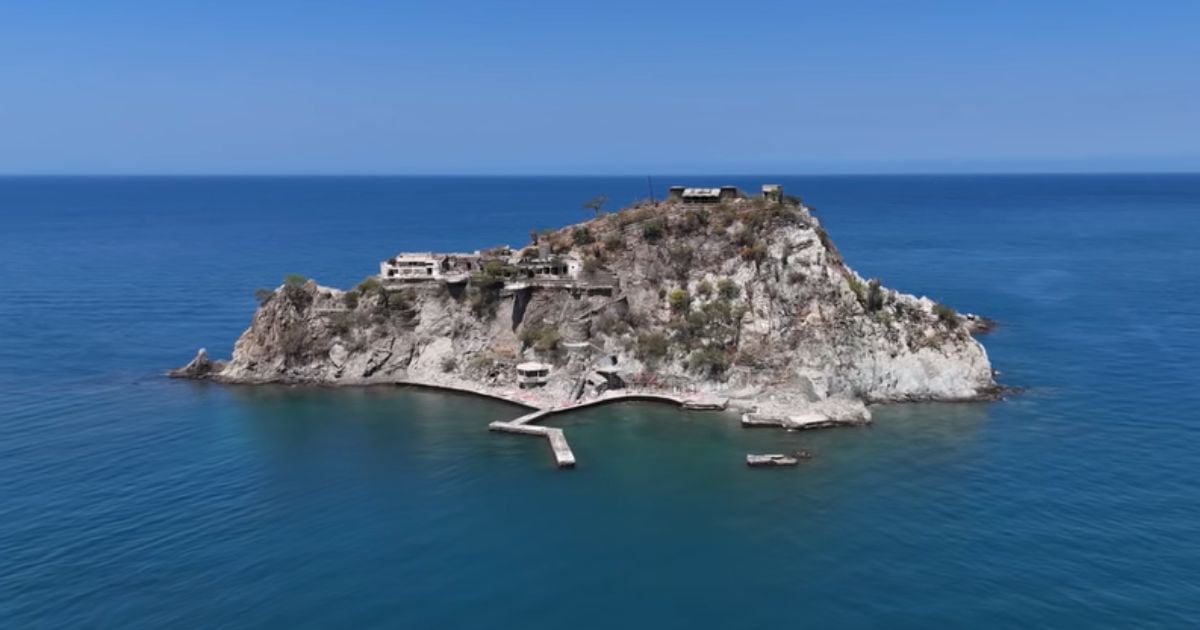 El islote, de roca viva y maleza quemada por el salitre, guarda en su cima una estructura en ruinas: paredes resquebrajadas, piscinas vacías donde la marea alguna vez se mezcló con el cemento, escaleras que crujen como huesos viejos. No hay señales, no hay turistas. Solo el viento y el rumor de que, en tiempos no tan lejanos, aquello fue un club privado de lujo, nacido del capricho y del poder.
