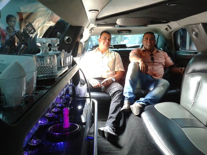 El candidato al concejo César Tiberio Marín, hace campaña en el bar se su lujosa limosina