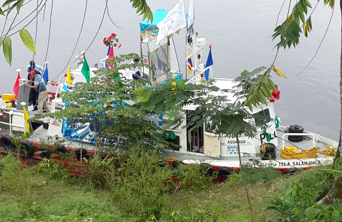 Un concierto de grupos marianos dio la bienvenida en el Puerto Yuma donde pescadores y fruteros esperaban con banderas blancas.