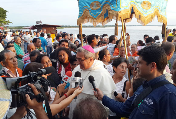 Después de 10 horas de viaje por el río Magdalena el barco llegó a Barrancabermeja. Una caravana de chalupas recibió la peregrinación con pitos y banderas. Con la luz de atardecer y después de estar varados 2 horas en medio del río, los barranqueños recibieron a Monseñor Gómez Serna con cariño. Una lancha auxilió a la tripulación con almuerzos y la guió hasta Barranca para evitar que encallara de nuevo. Un concierto de grupos marianos dio la bienvenida en el Puerto Yuma donde pescadores y fruteros esperaban con banderas blancas. Anuncios. Anuncios..