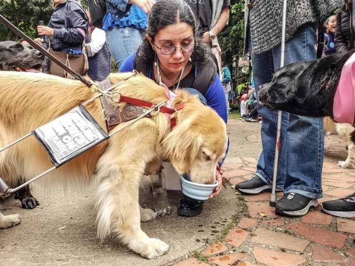 La marcha avanzó por toda la carrera Séptima hasta el Parque Nacional. Acá había refrigerio para los asistentes y una estación de hidratación para los perros guías, que incluso tienen horario laboral de 8 horas diarias, pues su trabajo es altamente extenuante y no pueden estar alertas si están cansados. La marcha finalizó en el Parque Brasil, en Teusaquillo, después de una y media de caminata.