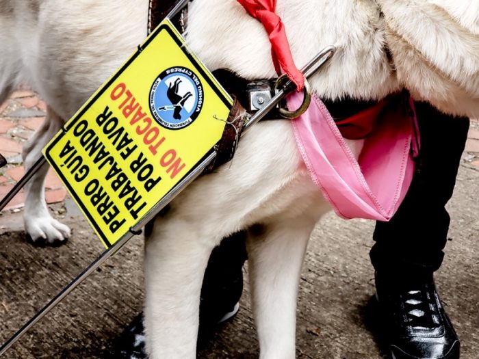 Tal es la diferencia de los perros lazarillo y los perros mascota, que los primeros llevan un cartel inmenso pidiendo que no los toquen. Cualquier chasquido, cualquier caricia, cualquier distracción puede distraer al animal y pone en riesgo la vida de la persona ciega.