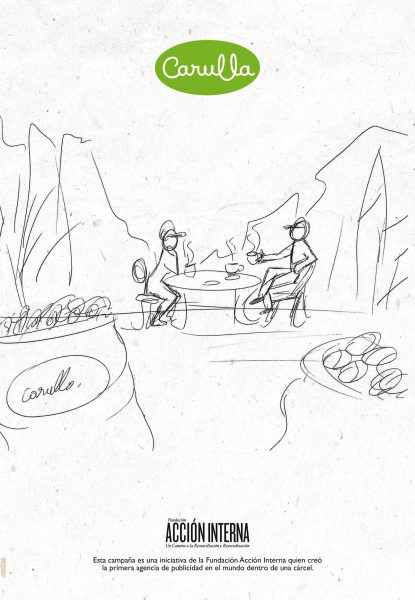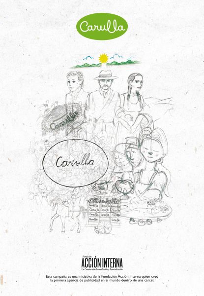 El proceso creativo contó con 12 sesiones, 15 creativos de Agencia Interna, más de 30 propuestas gráficas y 90 horas de trabajo, todo con el objetivo de dar a conocer el compromiso de Carulla con el campo colombiano. De esa manera, crearon la campaña «Carulla se viste de campo». A los reclusos que trabajaron en la agencia se les descontará un día de condena por cada dos días trabajados. Cualquier recluso, sin importar por qué delito fue condenado, puede participar en los programas de la Fundación Acción Interna. Sin embargo, para la agencia de publicidad se escogieron reclusos a quienes no les quedaran más de dos años para terminar la condena.