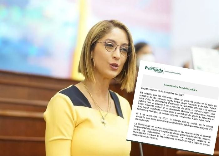 “El pasado 5 de noviembre la señora Leydy Lucía Largo Alvarado radicó en la Secretaría General un documento impreso que, según manifestó, corresponde su trabajo de grado de Maestrías en Gobierno y Políticas, de autoría conjunta con Jennifer Kristin Arias Falla. El 8 de noviembre, la referida señora radicó, en la misma instancia, una copia autenticada notarialmente del documento”, comunicó la institución.