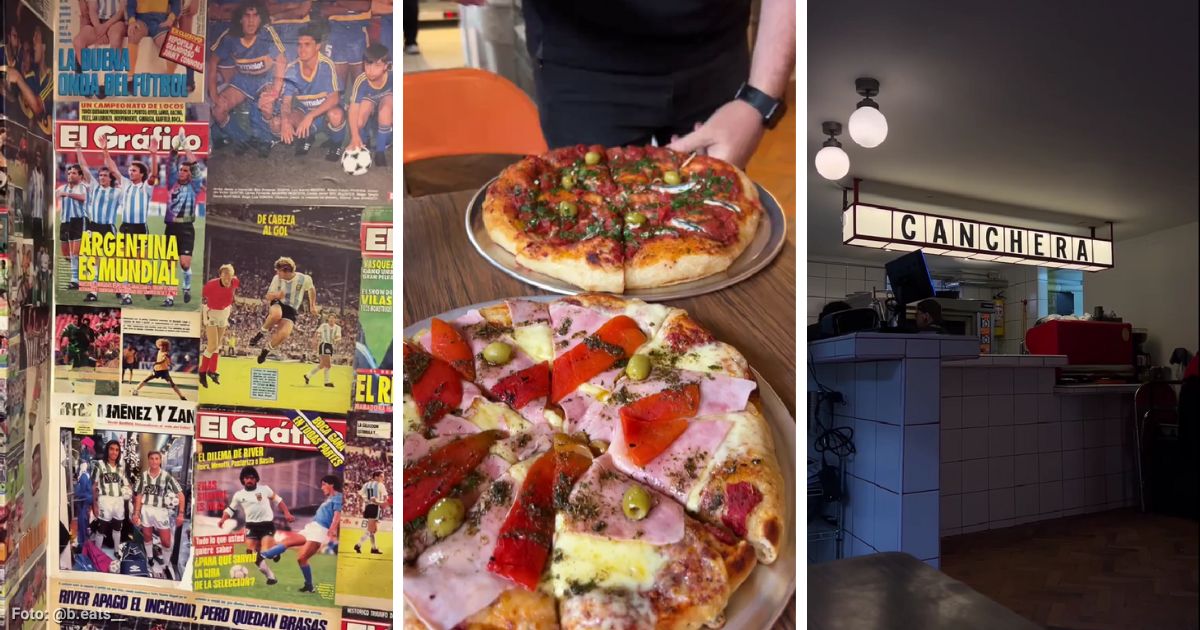 Las pizzas de Canchera son al estilo porteño, la diferencia a las napolitanas es que son hechas en molde y la masa es mucho más esponjosa, aquí también encontrará Vermut.