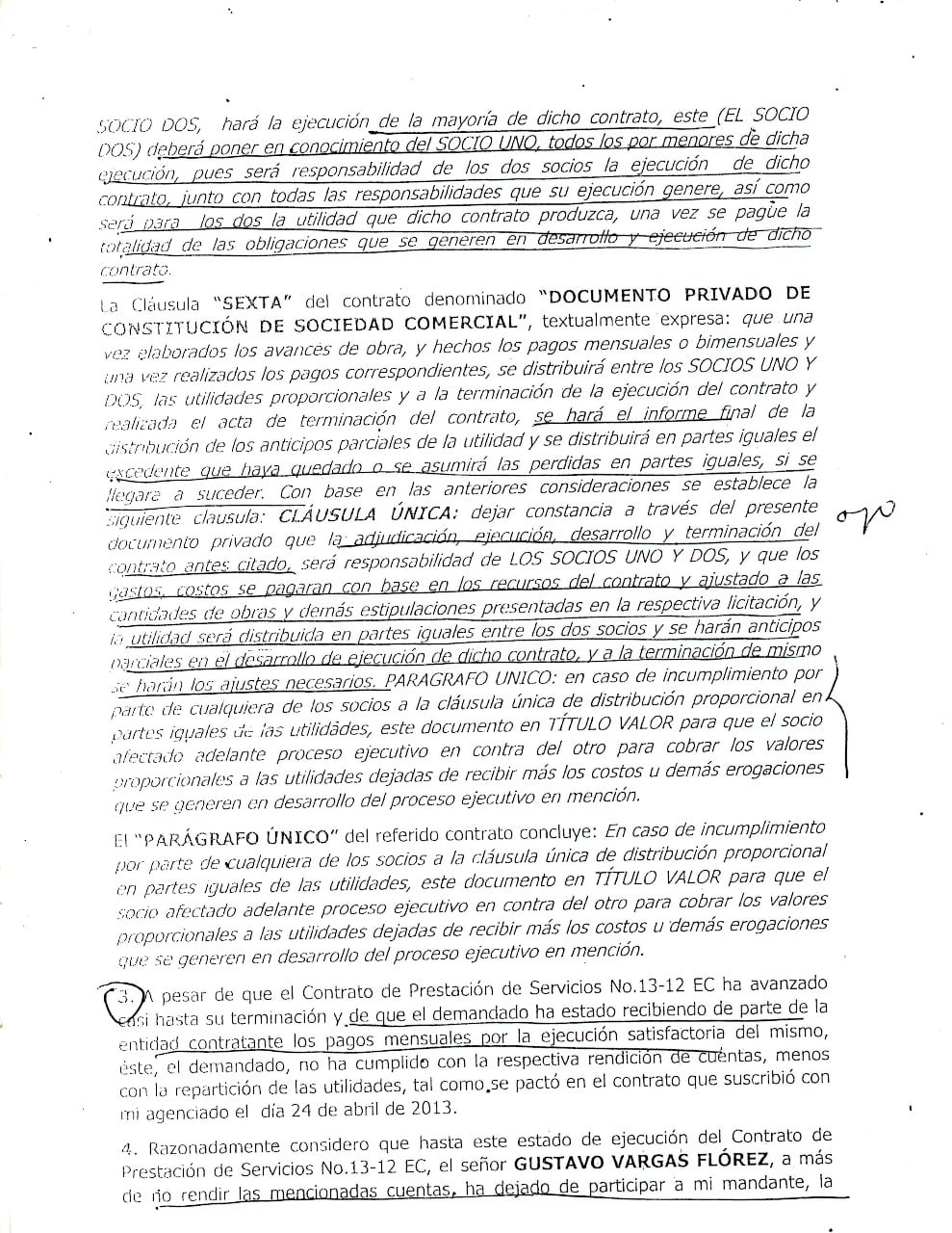 Realizadas consultas a varios juristas del departamento, afirmaron que los hechos mencionados en una demanda civil en forma directa o a través de abogado, a quien se le ha conferido poder, se entienden expuestos bajo la gravedad de juramento, por lo que concluyen que, en ese proceso civil, el alcalde ha confesado su participación en “la adjudicación, ejecución, desarrollo y terminación del contrato”, es decir, entre el actual alcalde y el ingeniero Gustavo Vargas.