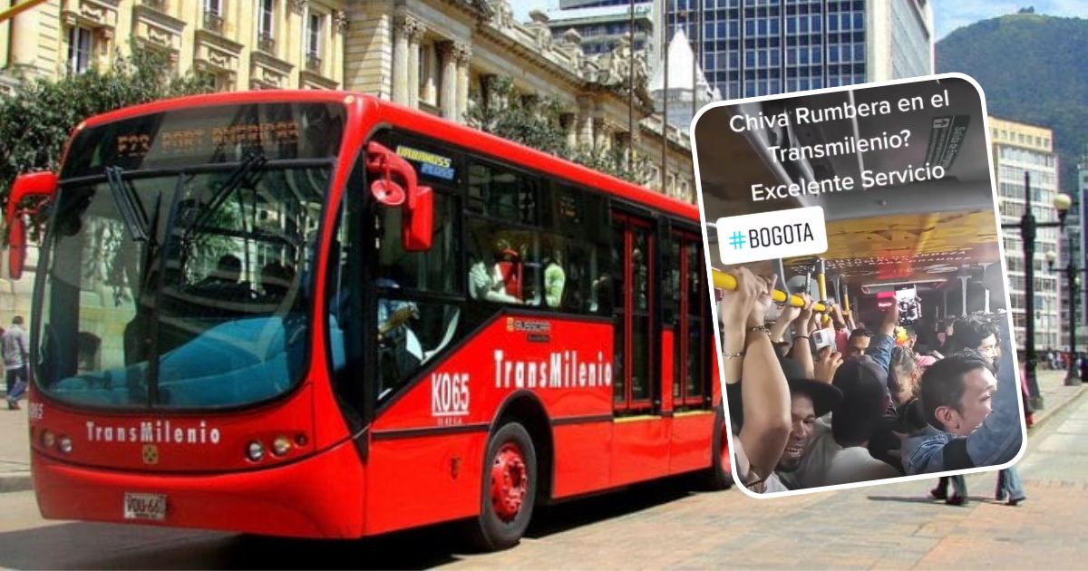 El primer clip fue compartido bajo la descripción “Chiva Rumbera por 2.650? sólo en #bogota” muestra a un hombre con un parlante en el que se reproduce la canción ‘Bichot’ mientras la mayoría de pasajeros corean la canción y graban el momento con sus celulares.