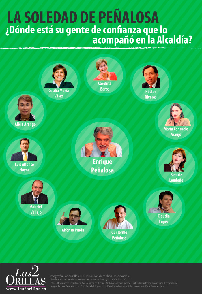 Peñalosa se prepara para una campaña que lo podría convertir en la opción de quienes no quieren la reelección del Presidente Santos. Lo complicado es que Peñalosa está solo. No ha logrado el respaldo unitario de su partido, con fuerzas internas como la de Ángela María Robledo, John Sudarsky y Gustavo Petro intentando sabotearlo, y su equipo de confianza que lo acompañó en la Alcaldía ha tomado rumbos distintos y no lo acompañarán ¿En que están?