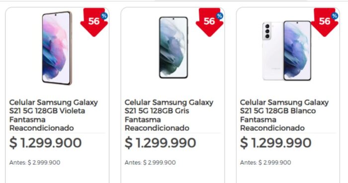 El más caro parece ser el Samsung Galaxy S21 5G 256GB, el cual cuesta $1.599.900, cuando normalmente tiene un valor de $ 2.999.900. Estos vienen en su caja, sellados y con el cable del cargador.