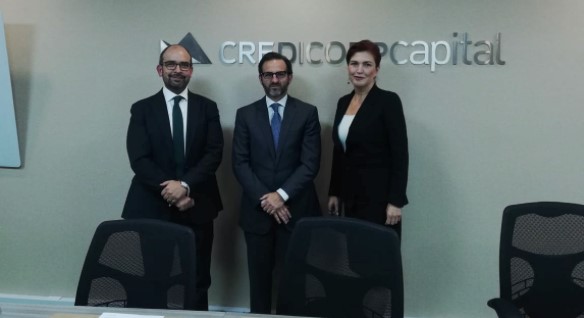 Adquisición mayoritaria de Ultraserfinco por parte de Credicorp Capital, Credicorp Capital Colombia, Luis Miguel González; el CEO de Credicorp Capital, Eduardo Montero y la presidente de Ultraserfinco, Paula Paucar