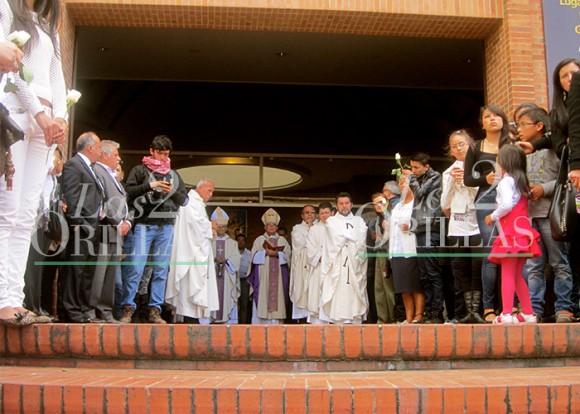 A las 2 y 10 de la tarde un camino de honor a lado y lado de la calle que conduce de la Funeraria Gaviria a la iglesia Cristo Rey, le abre paso al féretro de Pedro Simón. No está lejos decir que este funeral en sus proporciones se asemeja al del gran zar de las esmeraldas Víctor Carranza, ocurrido en abril de 2013. Parece un Déjà vu. Las mismas pieles, ojos, manos, peinados, maneras de vestir y de hablar pero con distintos nombres y apellidos se han hecho presentes. Camionetas blindadas y esquemas de seguridad se avizoran en las esquinas. No se ve un arma, pero el aire es denso. La policía no envió a 40 pero si a 20 hombres del Grupo Operativo Especial de Seguridad (GOES), para evitar otro atentado, secuestro o trinca. Asimismo, están presentes una docena de patrulleros de la policía metropolitana de Bogotá. Exactamente los mismos siete clérigos que estuvieron en el réquiem de Carranza, oficiaran las honras fúnebres de Pedro Simón: monseñor Héctor Pabón Gutiérrez, el obispo Luis Felipe Sánchez y cinco sacerdotes más. Como si la escena fuera calcada, el joven fue velado en la misma sala en la que estuvo Carranza.