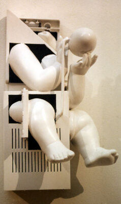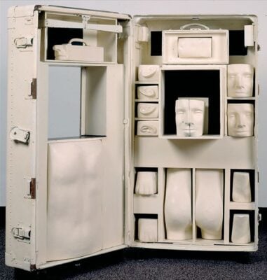 En los años ochenta vinieron cajas blancas que armó con pedazos de muñecas. A la manera de Francis Bacón, Salcedo ahoga la referencia humana dentro de la obra. Para esta serie utilizó fragmentos de muñecas –que se asemejan bebés descuartizados - para encajonarlos en una armadura geométrica de madera.