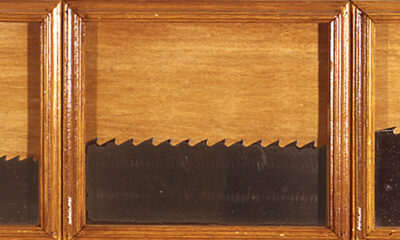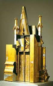 Sus últimos trabajos son una evocación de la arquitectura católica o construcciones abstractas que siguen el caos de una geometría personal. Me gusta ver esta obra desde la geometría abstracta. Como si fueran estructuras imaginarias que atraviesan trayectos que pueden ir desde el bizantino romántico al gótico utópico.