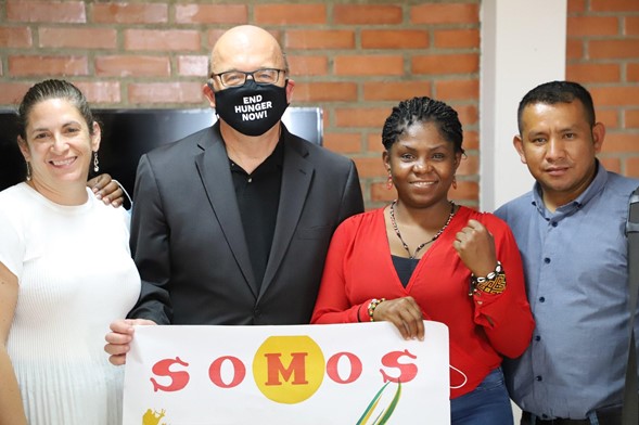 El congresista Jim McGovern en reunión junto con Lucy Amparo Guzman, Alcaldesa de Santander de Quilichao (izquierda); la precandidata presidencial Francia Márquez (tercera a la derecha) y el reconocido líder campesino del municipio de Suarez, Cauca, Juan Pablo Salazar. Foto: Vía Twitter