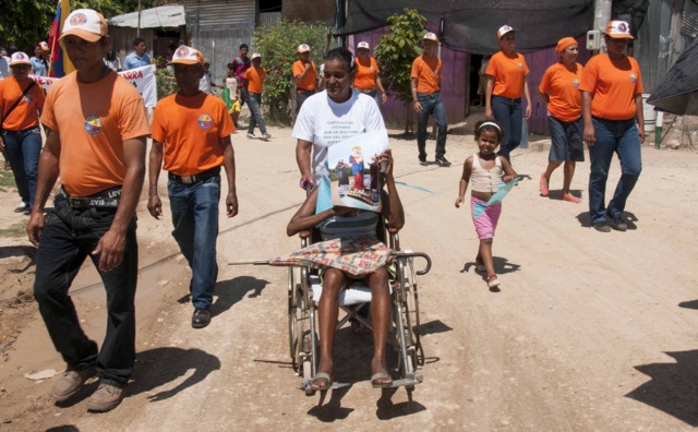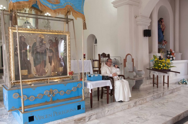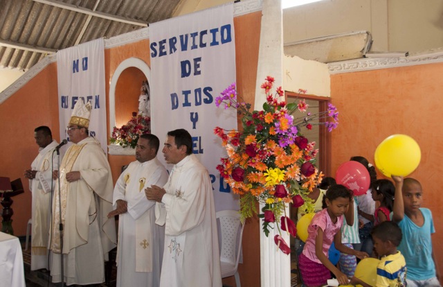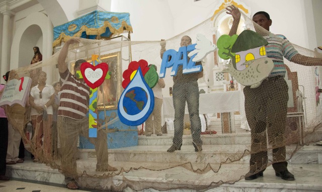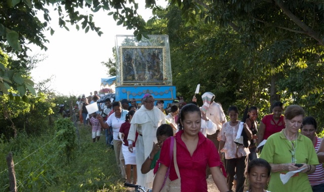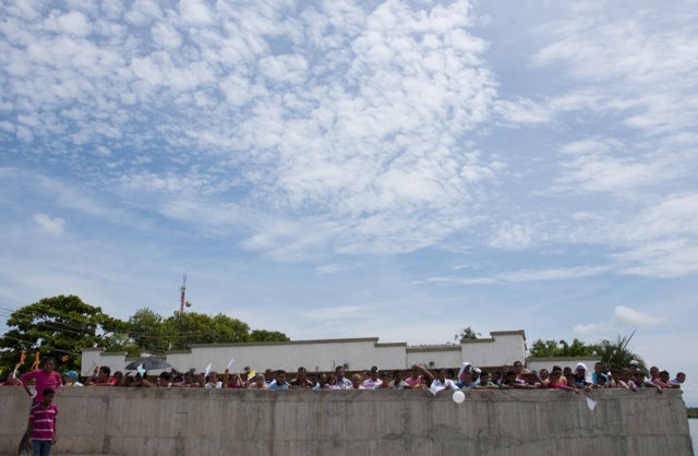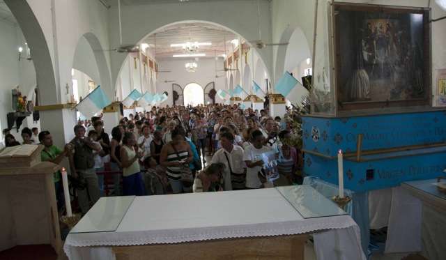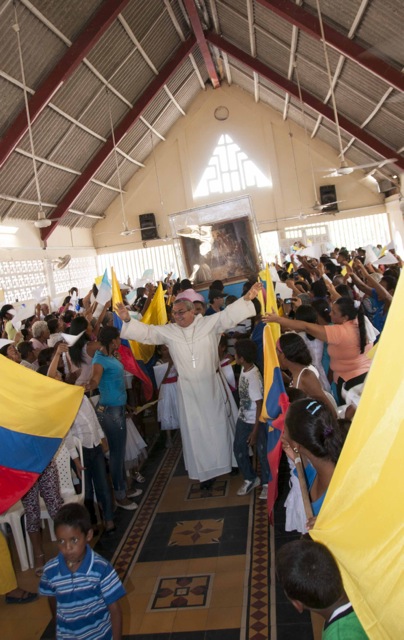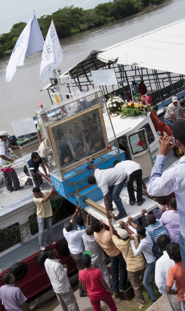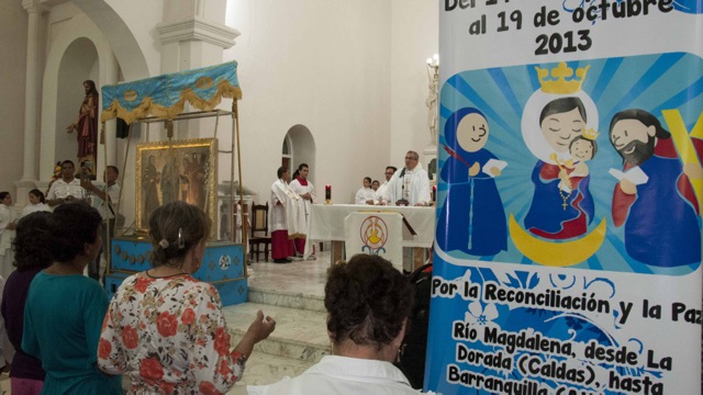 Nueve días después de iniciar su recorrido por el río Magdalena, la Virgen de Chiquinquirá llegó hoy lunes a la población de El Banco en el departamento de Magdalena. Los pobladores del Programa de Desarrollo y Paz del bajo Magdalena, recibieron a orillas del río y en un ambiente festivo al Isla Salamanca, el barco que trasporta a la Virgen y a monseñor Leonardo Gómez Serna, quien con esta travesía quiere devolverla le vida al río que por muchos años fue la tumba de cientos de víctimas de los paramilitares a lo largo de su cauce.