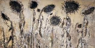 Ha recorrido el mundo buscando referencias, pero en 1993 Anselm Kiefer se trasladó a vivir al sur de Francia. Donde tiene tres grandes espacios que le permiten trabajar sus enormes instalaciones. En el Museo Hirshhorn en Washington lo encontré por primera vez en 1994. Con un avión de plomo que llevaba flores de girasol en las alas. Mi interés comenzó por el trauma que llevaba ese avioncito. Las flores de girasol pintadas y apagadas llevan el trauma y la agonía de la naturaleza embarrada y muerta con ceniza. Todos los símbolos de materiales crean el cosmos de una historia donde por debajo existe la música de Richard Wagner o la poesía de Paul Celan.