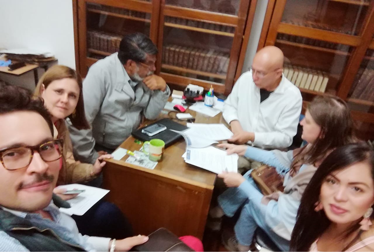 De izq. a der.: Andrés Óliver Ucrós y Licht, conferenciante; Beatriz Quintero Espinosa, directora del Archivo Central del Cauca; Jorge Eliécer Quintero, Ph.D., productor del evento; D. Diego Caldas, fundador del Museo Caldas de Bogotá junto a su esposa, la investigadora rusa Nataliya Savitskaya; y Stefany Lemus, representante del Concejo Municipal de Popayán para el evento.