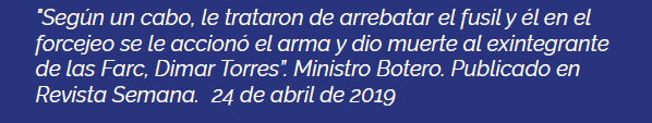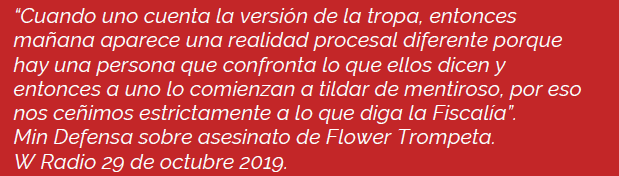 El ministro de Defensa había afirmado inicialmente que el asesinato había sido un accidente y que los uniformados del Ejército se estaban defendiendo de una agresión. Al final se demostró que fue un homicidio preparado.
