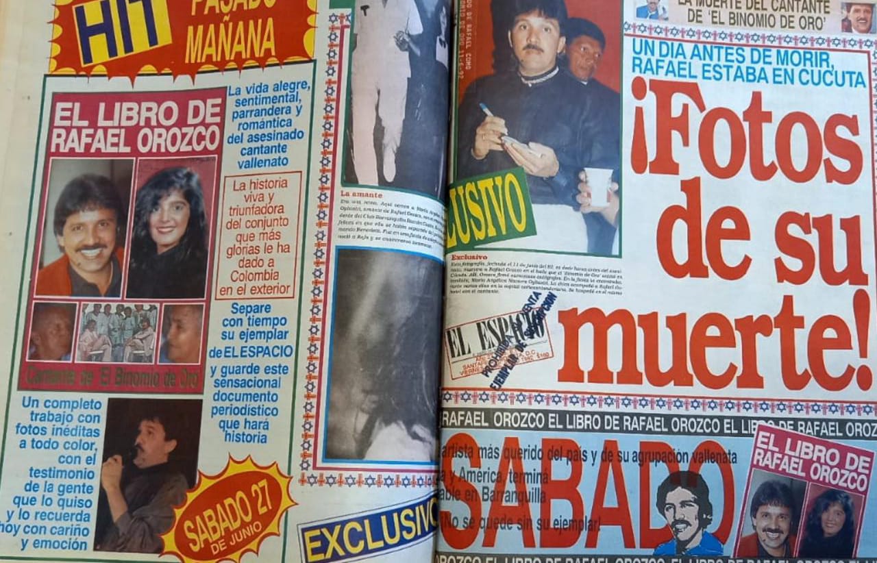 “Marica, mataron a Rafael Orozco, vámonos para el periódico”, fueron las palabras de Jiménez según refiere Rondón, el destacado cronista quien durante más de dos décadas ejerció en El Espacio y actualmente publica sus relatos de largo aliento en la edición de sábado de El Tiempo. “Carlos me da la noticia y ya a esa hora los locutores en las diferentes tarimas donde se presentaban grupos vallenatos, orquestas de salsa y de merengue dominicano, anunciaban la tragedia. Todo quedó en silencio, la fiesta se acabó y la gente se puso a llorar. A media noche corrieron a un teléfono monedero y llamaron al editor general Alberto Uribe a su residencia”. En medio de la somnolencia no dimensionaba el tema, hasta que Ricardo atinó a decirle, “Jefe, mataron al gran amor de los colombianos”.