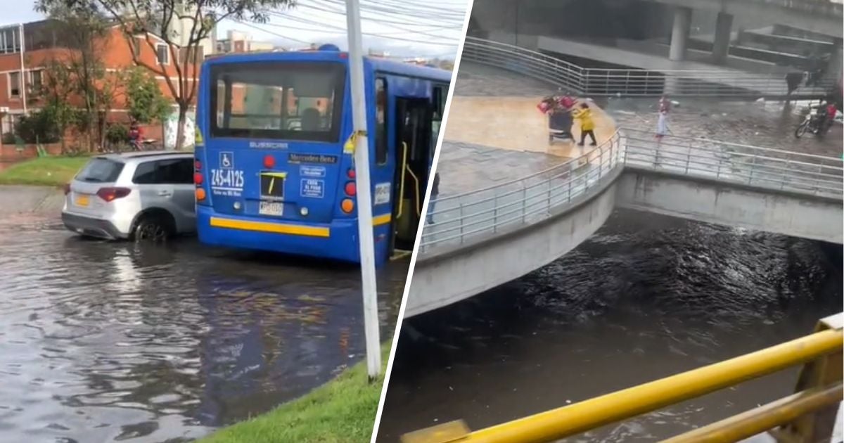 En redes sociales, los ciudadanos de Bogotá han registrado los estragos de las lluvias en las calles de la ciudad. Uno de los videos que más se ha viralizado, se puede ver la estación de Transmilenio Bicentenario completamente inundada.