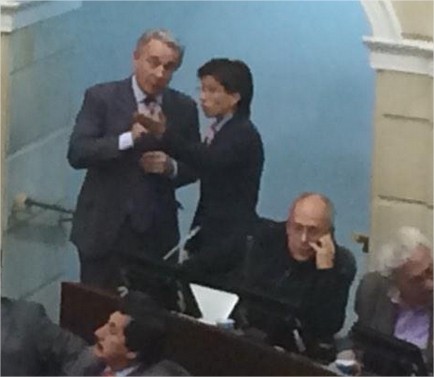 Esta imagen muestra a la senadora de la Alianza Verde Claudia López y Al expresidente Álvaro Uribe, dos grandes contradictores políticos, en disposición para llegar a acuerdos puntuales en el trámite de la ley del equilibrio de poderes. Hace pocas semanas Claudia López calificó al expresidente de “sanguijuela” en el debate de la parapolítica, pero ahora avanzan en acuerdos como al que pueden llegar para aprobar la llamada lista cremallera que busca que en el congreso haya equidad en la participación de hombres y mujeres en las elecciones de congreso.