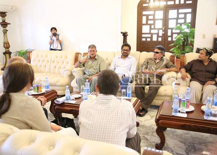 Algunos días después de que se conocieran las imágenes de tres guerrilleros disfrutando una travesía en yate por las costas habaneras, el gobierno entregó a los medios un par de fotografías en las que se ve a los miembros de la delegación oficial en actitud de trabajo, una en su lugar de alojamiento en el oeste de la ciudad y otra en el avión que los traslada periódicamente de Bogotá a la capital cubana. Sin embargo, sigue siendo muy poco lo que el público ha podido ver "detrás de cámaras".