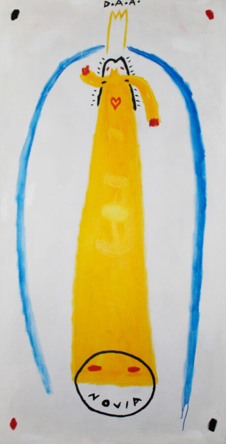 No es un artista primitivo. Creo que tiene el alma limpia y por eso su imaginación y su impulso viven en otro mundo, aunque reside en la isla de Mallorca, Diego Arango (1946) trae a la galería la Balsa en Bogotá sus imágenes que están cargadas de humanidad infantil. El mismo pintor anota: “… Mi primer recuerdo es una cometa inmóvil en el aire. Era una cometa multicolor y gigante, que estaba estática allá arriba. Se encontraba suspendida a una gran altura, y yo, claro, no veía el hilo. Ni sabía que así funcionaba. Entonces pensé ¡que estaba colgada del cielo! Es una vivencia que siempre recordaré. De ahí en adelante he descubierto que el modo de ir destapándole la tapa a los recuerdos, tiene mucho que ver con la pintura. A medida que he ido pintando, dibujando, se me van apareciendo, en medio de los trazos, trozos y trozos de infancia. Grandes retazos que comienzo a plasmar. Es que ir pintando es ir creciendo en la búsqueda de la forma, e ir creciendo es darle forma a la búsqueda de la vida. Todo se mezcla con todo”.