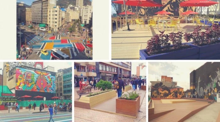 El proyecto placemaking busca que los ciudadanos se apropien del espacio público y para ello, el DADEP (Departamento Administrativo de la Defensoría del Espacio Público) y el Distrito llevaron a cabo la reubicación de vendedores ambulantes, la revegetalización de andenes y espacio público, la restitución de andenes, la instalación de parasoles, sillas, jardines y plataformas, se rediseñaron las cebras para que sean mucho más amplias y con muchos colores, y se contrataron muralistas reconocidos como Mamani Mamani para pintar sus obras en las grandes medianeras de los edificios altos.