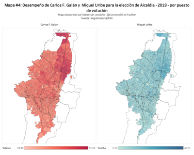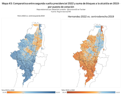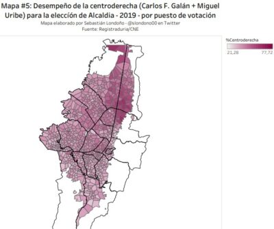 Como se había escrito anteriormente, esta luna de miel entre Claudia López y Gustavo Petro podría tener voces disidentes al interior del centro político. Por ejemplo, parecería difícil que el Nuevo Liberalismo pueda entrar dentro de la eventual alianza configurada entre la alcaldesa y el presidente electo. Eso sugiere que Carlos Fernando Galán podría ser una tercería que opte por la alcaldía en 2023. Además del Nuevo Liberalismo, hay figuras importantes al interior de Alianza Verde como Martin Rivera, Diego Laserna o Mauricio Toro que podría ser resistentes a una unión entre el centro y la izquierda. En términos territoriales, este centro disidente no tiene otra alternativa que crecer en los espacios en donde la derecha ha sido tradicionalmente hegemónica, aprovechando el vacío de poder, mientras logra ser competitiva en zonas de clase media consolidada ubicadas en el occidente y centro geográfico de la capital.