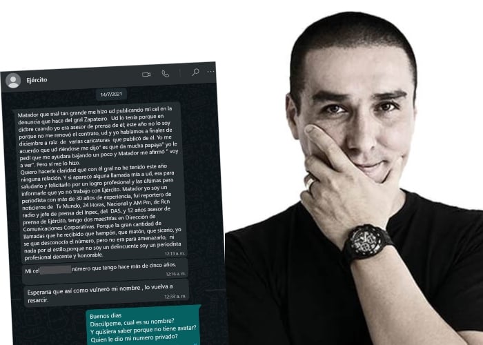 Matador, el reconocido y talentoso caricaturista de El Tiempo, lleva meses denunciando desde sus redes sociales, el envío de cartas por parte de Comandante del Ejercito, General Eduardo Zapateiro y también el recibimiento de llamadas y mensajes extraños desde números desconocidos.