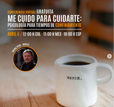 3. Walter Riso: Psicólogo y escritor se ha encargado de realizar conferencias y charlas virtuales gratuitas para ayudar a sus seguidores superar la situación actual cuidando la salud mental.