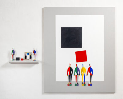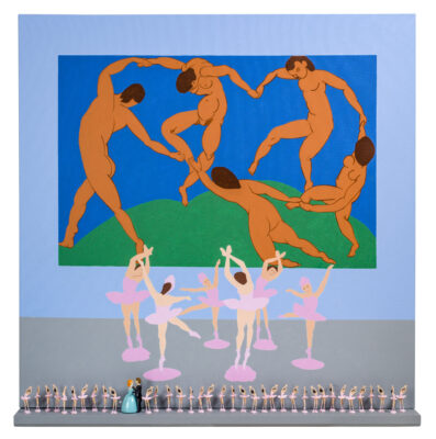 En esta exposición incorpora a sus pinturas una repisa en la que hace lo que siempre hace ella, interviene la obra con su propia versión e intención. Es el caso de La Danza de Matisse obra realizada a petición de un millonario ruso textilero en 1919 y que ahora cuelga en el Hermitage, en la que sus danzantes seres en movimiento circular empiezan a hablar del arte abstracto. Elsa les incluye un grupo de bailarinas de ballet pintadas y una fila de figuras en plástico, pequeñas bailarinas interpretadas en rosado que contrasta con el azul brillante característico de Matisse. También usó para esta novedosa propuesta al artista ruso Vladimir Malevich fundador del Suprematismo ruso, reconocido por el mundo años después de la revolución. De este artista Elsa escoge Los Deportistas, figuras que repite dentro del cuadro y en la repisa haciendo contraste con la geometría y la utilización del color.