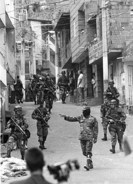 En la madrugada del 16 de octubre de 2002 la IV Brigada del Ejército entró a la Comuna 13 de Medellín para cercarla desde abajo y abrirle paso a 1.200 hombres de la Policía, Fiscalía y DAS. La operación estaba planeada milimétricamente y Uribe, la ministra Ramírez y el alcalde Pérez la supervisaron desde el centro de operaciones. Los militares usaron además helicópteros artillados, tanquetas y las armas de tecnología más avanzada. Pero mientras las fuerzas armadas entraban a la comuna, por la parte de arriba entre los barrios las Independencias I, II y III; y El Salado, Don Berna y cientos de paramilitares más del Bloque Cacique Nutibara también se escurrían entre callejones y potreros para tomar el control de la zona. Nadie los contó, pero algunos afirman que fueron 800 paramilitares, un ejército de la muerte que impuso su ley y tomó el control de la comuna.