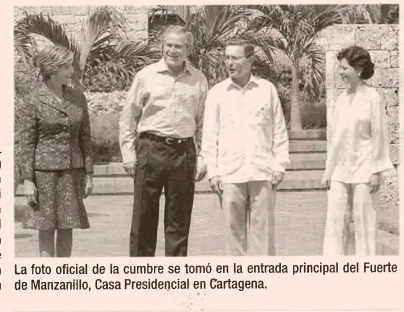 George W. Bush y Laura Bush con Uribe y Lina Moreno en la Casa de Huéspedes de Cartagena
