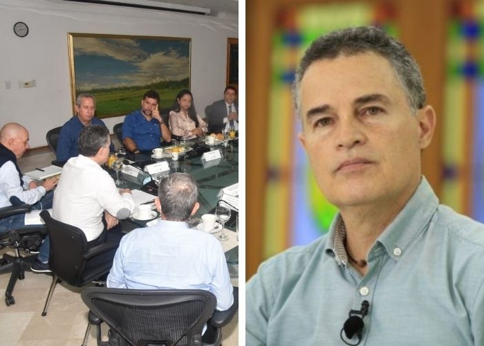 Aníbal Gaviria convoca una reunión con congresistas antioqueños. A su lado Juan Esteban Álvarez toma nota