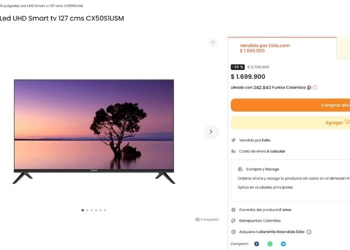 La marca llegó a Colombia en 2018 y rápidamente se ganó la confianza de los compradores. Con precios accesibles que van desde los $500.000 hasta los $3’000.000, según el tamaño y las especificaciones del televisor, se puede comprar en supermercados como el Éxito. Para este día sin IVA una de sus referencias que más llaman la atención es la CX50S1USM, un smart TV de 50 pulgadas que hoy se puede comprar a $1’699.000.