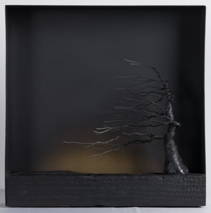 Crea viajes, construye casas con puertas de vidrio para no entrar ni cerrar los infinitos viajes de maletas sin viajeros. Obras de arte de soledades y caminos sin rumbo. En una navegación a la deriva desde un puerto desolado. No hay adiós. Ni perdón. Ni olvido en ese mundo de geografías inhóspitas y sin destino porque en más allá no vuelve entre los viajes húmedos y las mil vidas inimaginables de la soledad mientras el tiempo pasa y la vida transcurre sin destino. El tiempo se pierde en esa historia efímera de la vida sin horas.