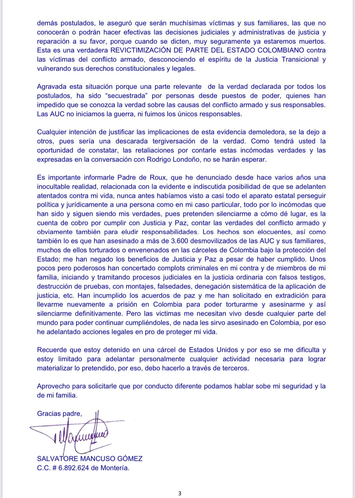 Mancuso fue el primero en entregar la carta el 27 de febrero