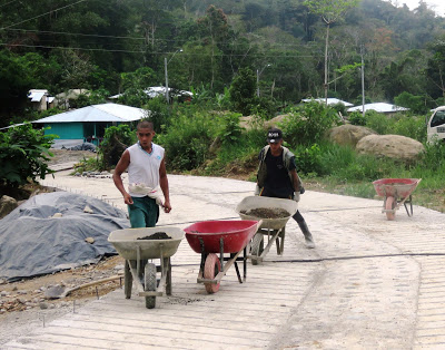 “Aquí no había carretera lo puede confirmar usted con los pobladores,no teníamos vivienda, nos tocó construir carretera y vivienda, el tiempo se nos ocupó en esto, pero hemos estado trabajando; ustedes ya han visto las peceras, los galpones y el poco espacio que tenemos lo invertimos en sembrar yuca, plátano y se está ensayando con unas semillas de soya para ver cómo nos pega acá, tenemos una experiencia con Sacha Inchi, un lotecito sembrado y el Sena nos hizo una capacitación, eso hay en el poco terreno que tenemos, no nos da para más tampoco.” Explica además, Rubén vive allí con su compañera, es padre de tres hijos, el mayor de veinte años