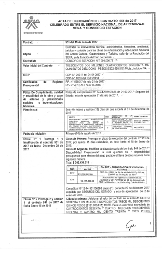 El objeto del contrato era la interventoría técnica administrativa financiera ambiental jurídica y contable para las obras de rehabilitación y adecuación funcional del centro cultural gastronómico y turístico calle de la fundación del Sena en la estación de tren de Pereira. Y aunque inicialmente tenía planeado terminarse el 31 de diciembre de 2017, terminó alargándose hasta junio 29 de 2018.