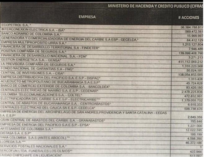 En su mira están Ecopetrol, ISA, el Banco Agrario, Artesanías de Colombia, Findeter, la Financiera de Desarrollo, el Acueducto Metropolitano de Bucaramanga, Colombia Telecomunicaciones Cotel, la Generadora y Comercializadora del Caribe, Gestión Energética Gensa, la Empresa de Energía del Pacifico, las Centrales Eléctricas del Cauca, entre las 30 que enlistó.