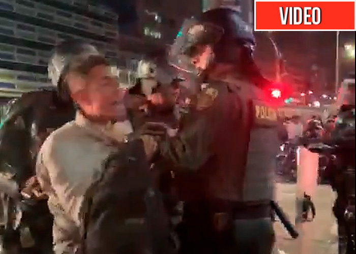 Otra vez el Esmad volvió a mostrar su peor faceta. Ocurrió en la noche del 26 de febrero durante las protestas que protagonizaron el Sena y la Universidad Distrital. En la imagen se ve el desespero del estudiante suplicando que no lo llevaran y gritando: ¡Me van a desaparecer!