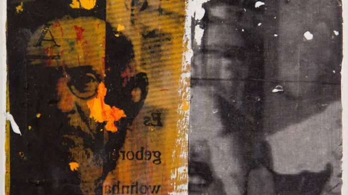 En el 2014 iniciamos un diálogo prolongado entre artista y curadora, sin otra pretensión que confrontar la consistencia conceptual y la forma expresiva de los hallazgos en la búsqueda de Brandwayn. Pasamos horas revisando su propuesta de enlaces para unir o hilvanar fotos, documentos oficiales y cartas. Eran más las preguntas que las respuestas y la imaginación substituía las lagunas de memoria, mientras el recurso de color y materiales servían de pretextos para integrar o desvanecer. Hubo etapas donde al llegar al taller Brandwayn había tapado con una capa de color las transferencias y estaba luego escabando sobre la pintura en una especie de acto de arqueología plástica. Su propuesta de escarbar en los recuerdos se materializaba en un acto creativo.