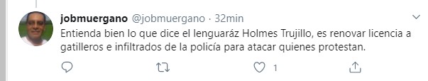 Sin embargo uno de sus trinos despertó preocupación por que contradice por completo lo que había afirmado el director de la policía: se había asegurado que la policía acompañaría a las marchas en protesta al gobierno de hoy 21 de septiembre sin armas mortales. Sin embargo el ministro de Defensa dice todo lo contrario: