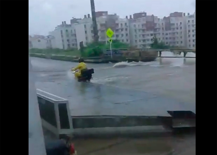 Las intensas lluvias que han caído sobre la ciudad de Barranquilla, han generado en las últimas horas varios arroyos en la ciudad, que algunas personas siguen subestimando. En este caso, un motociclista decidió cruzar el arroyo pero tan pronto lo intentó su moto fue arrastrada.