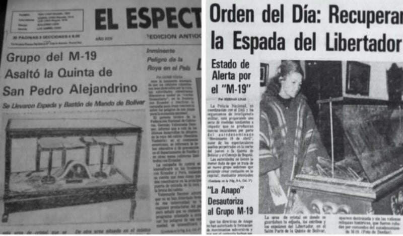 Recortes de prensa de la época del robo de la espada de Bolívar por parte del M-19. Cortesía: Santa Marta al día