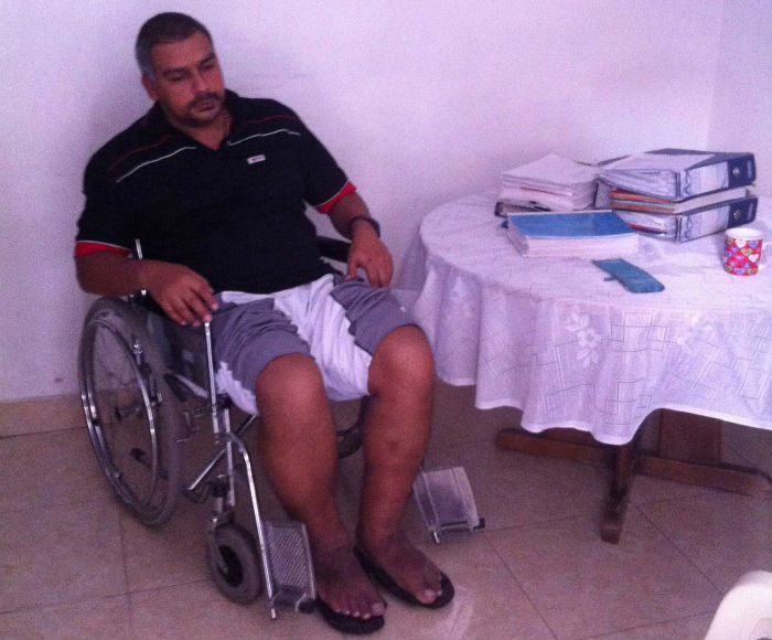 En 8 años de trabajo, Julio sufrió 5 accidentes laborales, varios de ellos a causa del exceso de fuerza que requería su labor (el 19 de mayo de 2004, el 23 de mayo de 2007, el 7 de mayo de 2008). Aunque el 28 de septiembre de 2011 fue el más grave: debía empujar una carga de 240 kilos, al momento de hacerlo sintió un tirón, tipo chuzo, que inmediatamente lo imposibilito para caminar bien, lo incapacitaron unos días y volvió al trabajo pero le cambiaron su oficio por uno que no requería de fuerza, no obstante eso no impidió otro accidente el 31 de octubre de 2011 cuando con movimientos repetitivos, se empeoró su lesión de columna. Todos estos accidentes de trabajo lo dejaron en silla de ruedas.