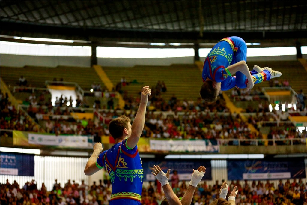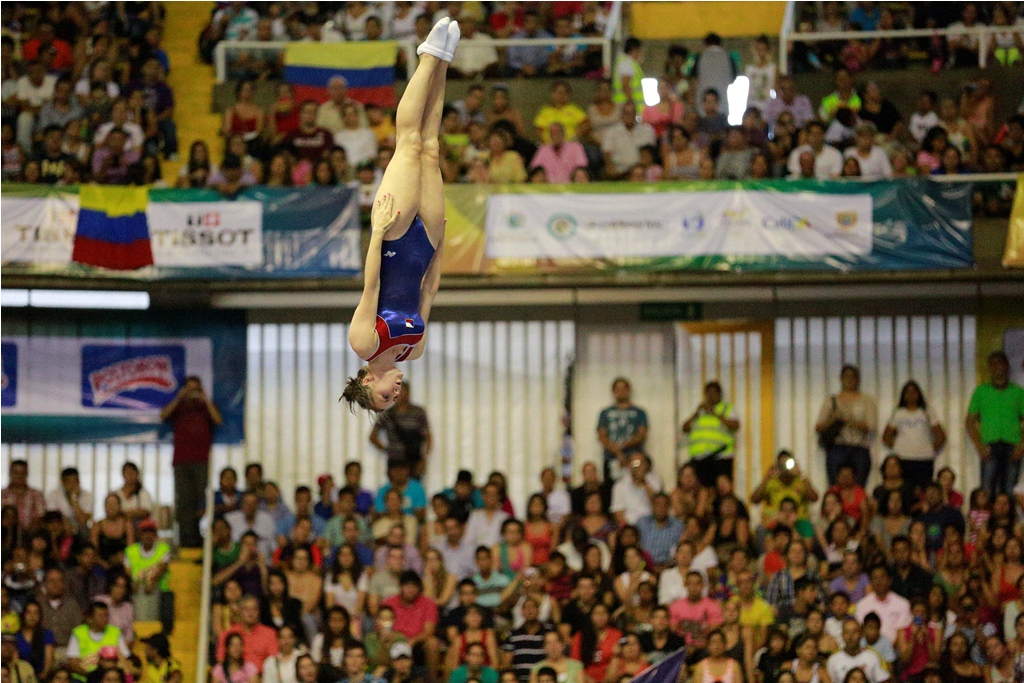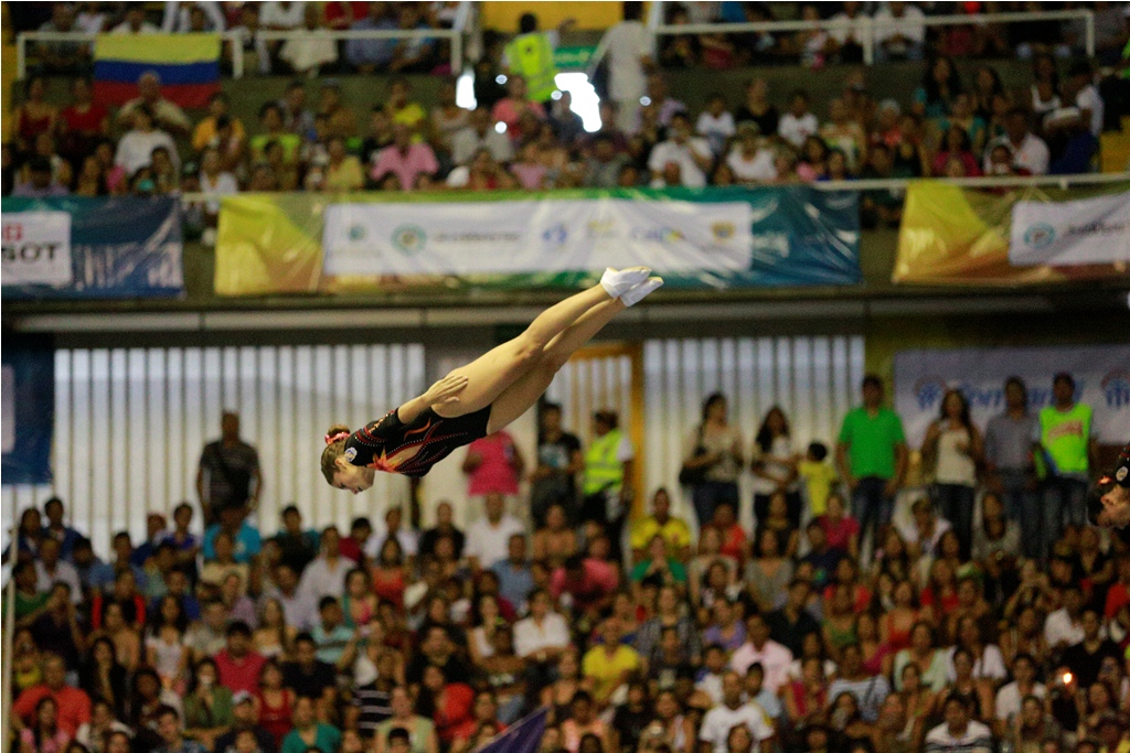El Coliseo del Pueblo sirvió como escenario de un evento que desde un principio atrajo mucho la atención del público caleño. La gimnasia acrobática en trampolín y piso, llenó las expectativas del público que los acompañó hasta las 10 de la noche con gritos, sonrisas y aplausos. Las grandes ganadoras de la noche en la disciplina de pareja sincronizada en trampolín fueron las chinas y las británicas que empataron en el primer lugar. Sin duda alguna las acrobacias circenses serán siempre un atractivo para toda clase de público, más aún con el nivel que se practicó hoy en la capital del Valle.